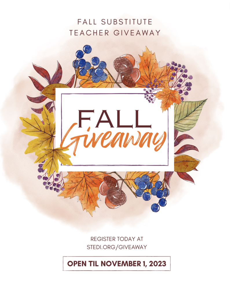 STEDI.org is hosting it’s annual Fall Giveaway. Invite your substitute teachers to register to win an Apple Watch at STEDI.org/giveaway.